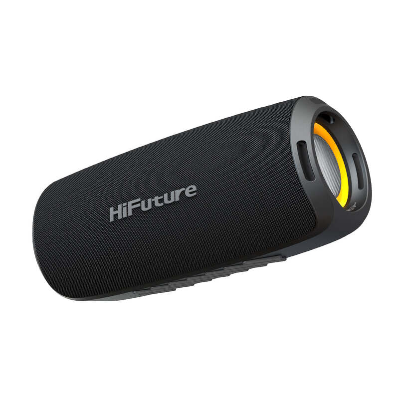 The HiFuture Gravity 45W speaker has a 45W RMS output from a two-way system (30W woofer + 15W tweeter), Bluetooth 5.3 for connectivity with up to a 10-meter range, an IPX7 waterproof rating, and a 4000mAh battery offering up to 8-12 hours of playtime. It features RGB LED lights, a TWS (True Wireless Stereo) function, and 10W Type-C fast charging.